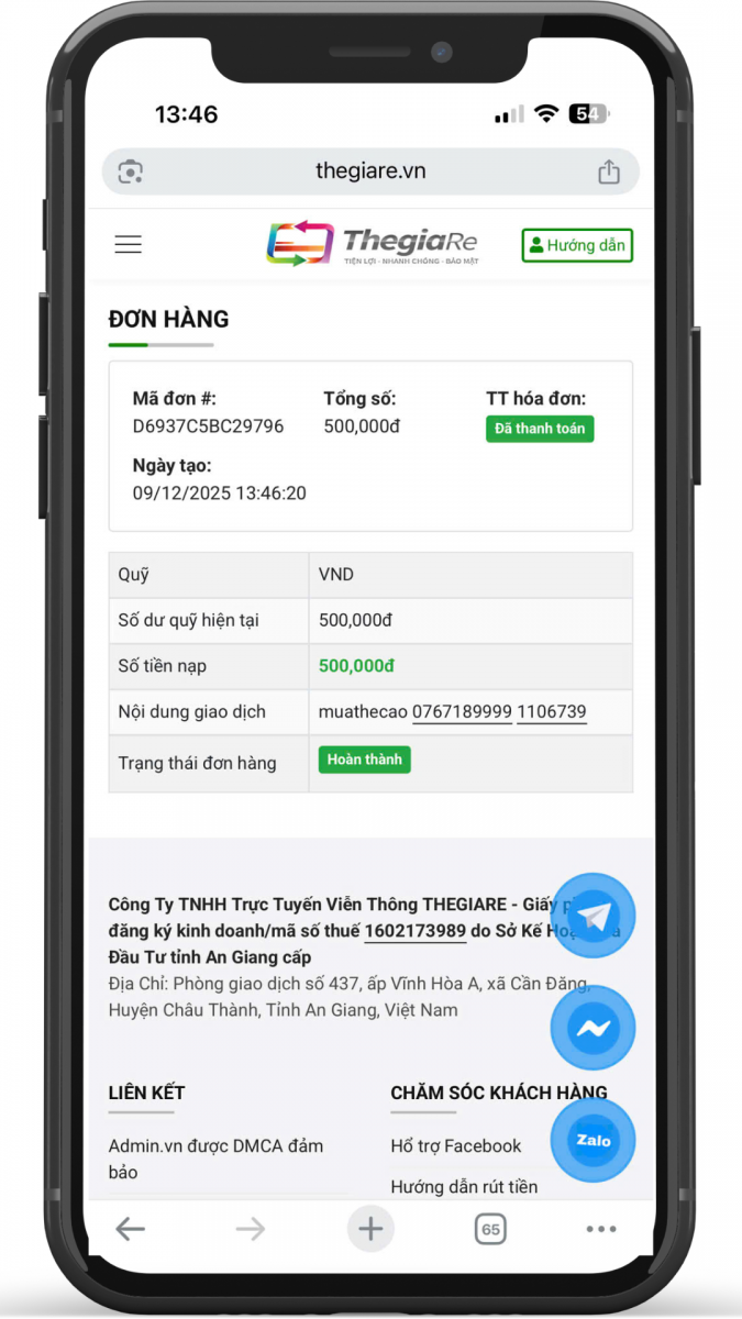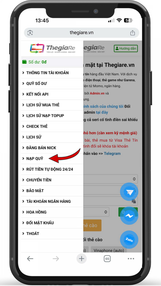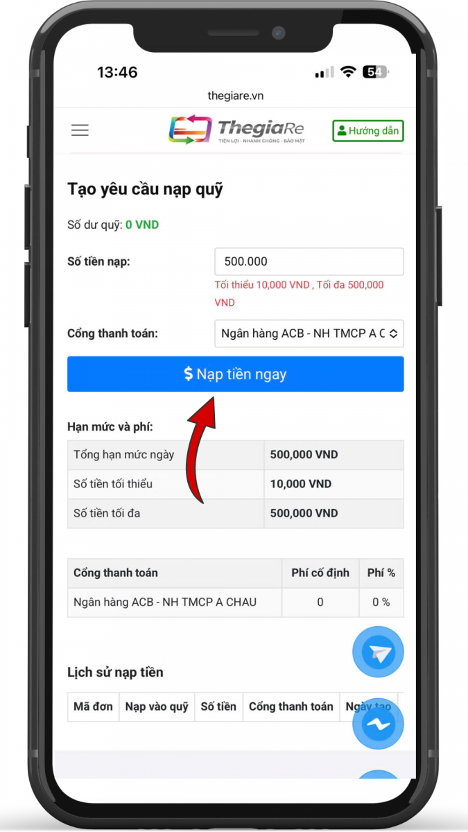 Hướng dẫn nạp tiền vào Thegiare.vn để mua thẻ cào, nạp game